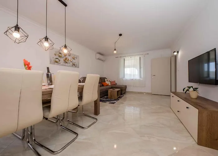 Darüber hinaus gibt es eine Küchenzeile, die mit einem Herd und einem Geschirrspüler ausgestattet ist. Der Flughafen Zadar ist innerhalb von 130 km zu erreichen.